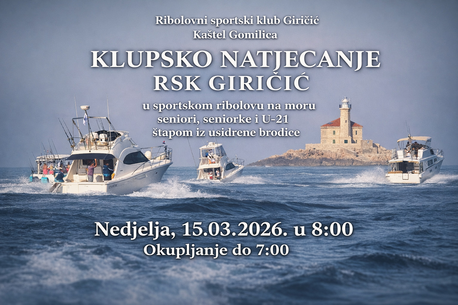Početna Pomorsko sportsko društvo Giričić PSD Giričić Pomorsko sportsko društvo Giričić se preko svojih članova-klubova primarno bavi sportskim ribolovom, jedrenjem, izgradnjom i vođenjem sportske lučice KŠR Giričić. Više o Društvu Društvo se sastoji od Jedriličarkog kluba, Ribolovnog sportskog kluba i ronilačkog kluba. Više o svakom klubu možete pogledati klikom na logo. PSD Giričić Događanja 11 – 14.08.2026 / ADRIATIC OFFSHORE TUNA CHAMPIONSHIP 2026. ROGOZNICA – CROATIAADRIATIC OFFSHORE TUNA CHAMPIONSHIP 2026. ROGOZNICA – CROATIA / 11-14 KOLOVOZA 2026. Read more18.10.2025 – RSK Giričić Klupsko natjecanje u Lignjolovu – poziv svim članovima klubaPoziv za sve članove RSK Giričić da se pridruže natjecanju u lignjolovu koje će se održati 11.10.2025 s početkom u 17:30 sati. Read more28.09.2025 – 14. KAŠTELANSKA REGATA – PRIJAVA – OGLAS I UPUTE REGATEPRIJAVE ZA “14. KAŠTELANSKU REGATU 2025” OTVORENE SU DO 27.09.2025 – 12:00 SATI, ISTE MOŽETE POSLATI OVDJE NA NAŠIM STRANICAMA […] Read moreLoad more Želite znati više o samom Društvu ili učlaniti se u jedan od klubova? Kontaktirajte nas!