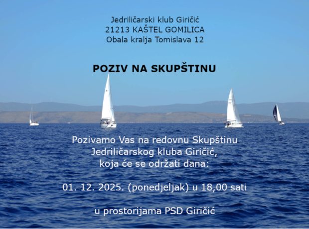 24 stu 2025 Posted on 24. studenoga 2025.24. studenoga 2025. Categories JK Giričić, PSD Giričić 01.12.2025 – Redovna Skupštinu Jedriličarskog kluba Giričić, poziv svim članovima
